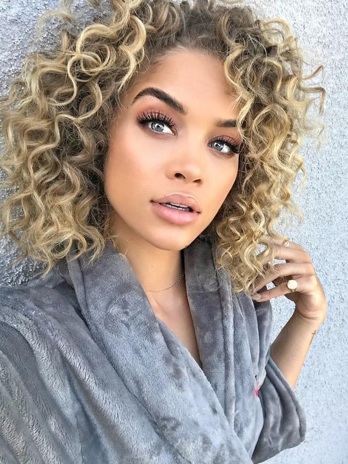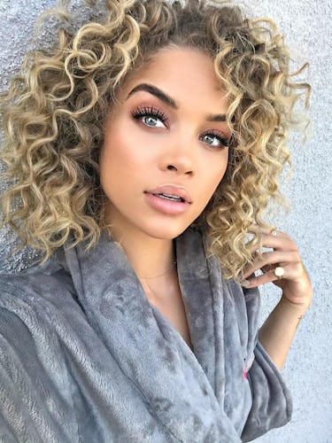 Le mannequin Jasmine Sanders fait de ses boucles volumineuses et de son smokey eye taupe un look de vacances incontournable.