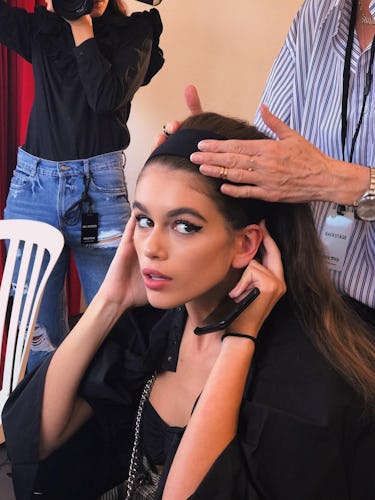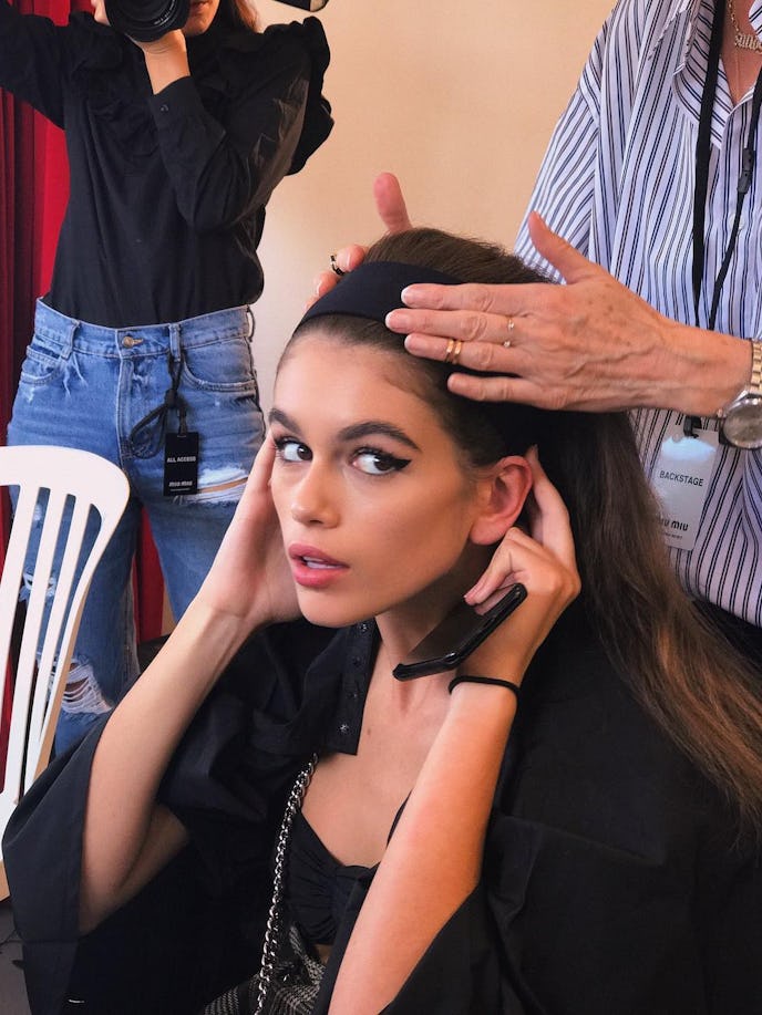 Le mannequin Kaia Gerber prouve qu’un œil de chat ailé et un bandeau à large bord vont de pair.