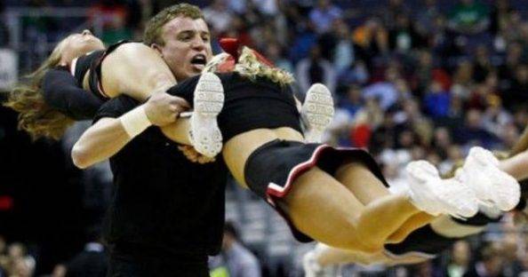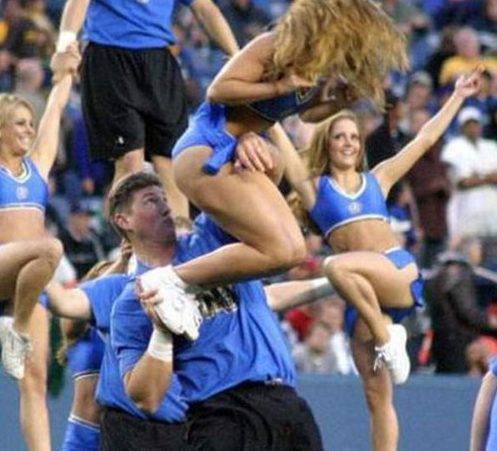 Il y a une chose qui peut certainement être dite pour ce cheerleader masculin, il est concentré. Bien qu’il semble qu’il ne soit pas concentré sur la bonne chose dans ce cas particulier. La pom-pom girl semble prête à tomber au sol, alors que le monsieur qui la tient semble procéder à une inspection minutieuse de son uniforme. Selon toute vraisemblance, il s’agissait simplement d’une photo prise au mauvais moment. Ceci étant dit, cela fait quand même une image assez gênante.
