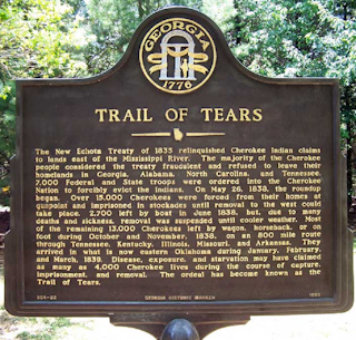 1835年に、チェロキー族の主席ジョン・ロスがアメリカからの保護を求めワシントンにいる間に、ジャクソンの代理人は、個々のチェロキー族に、ミシシッピーの西の新しい保留地に移ることに同意する条約に署名するようにさせた。